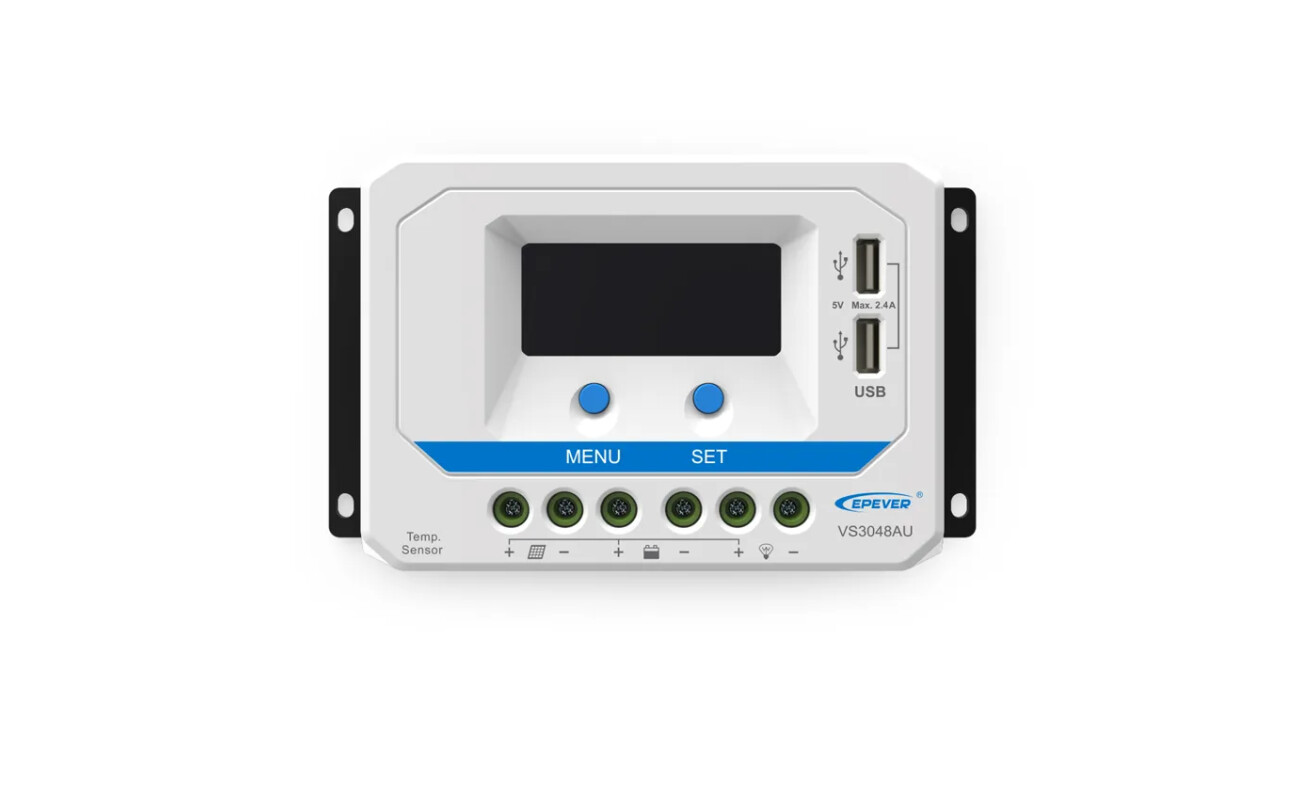 1090,00Kč s DPHKvalitní solární VS2024AU PWM regulátor 50V/20A 12V/24V s přehledným vestavěným LCD displejem a dvěma USB výstupy.