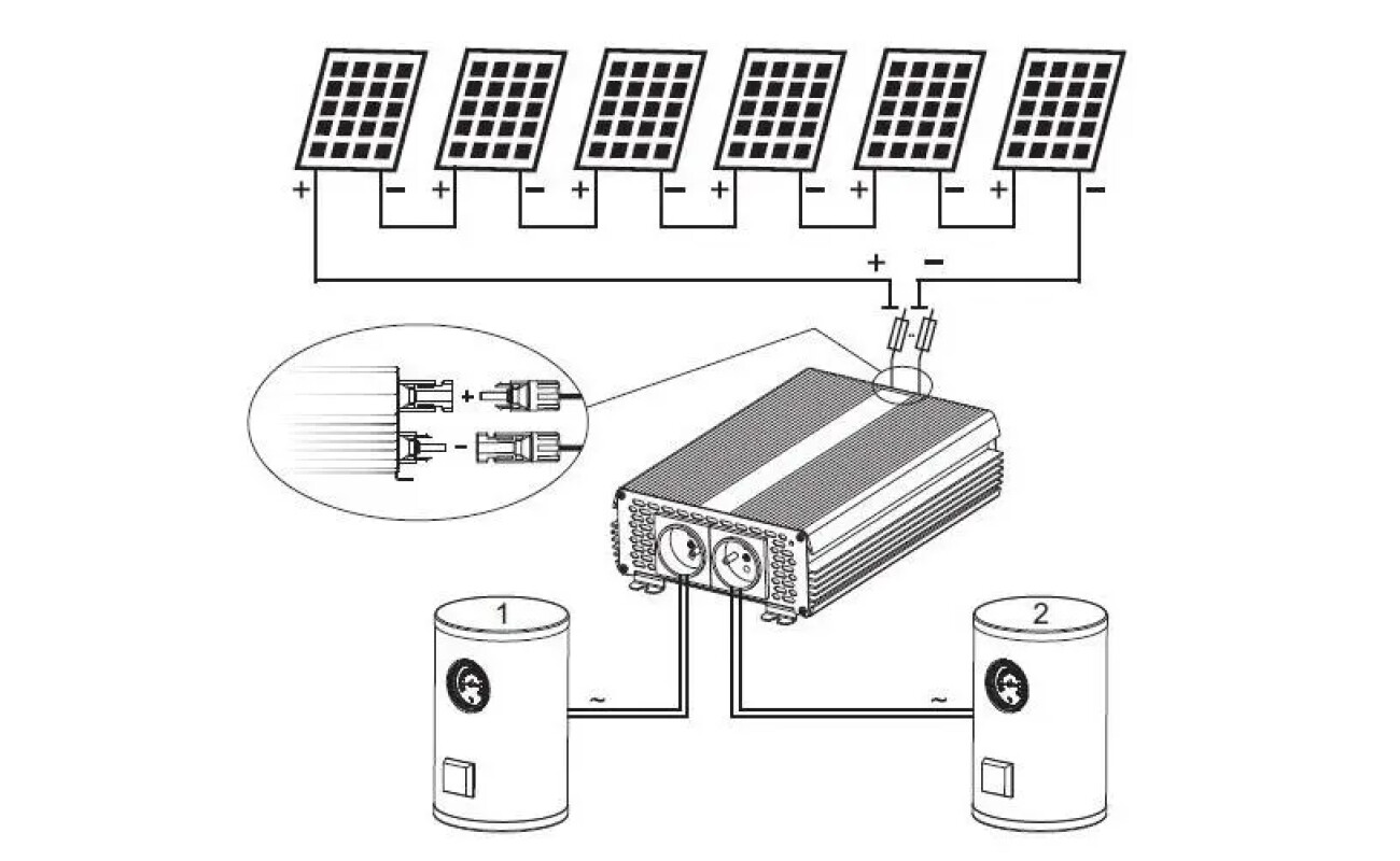 Fotovoltaická sestava pro ohřev vody 1800W – fotovoltaický ohřev bojleru (TUV)
