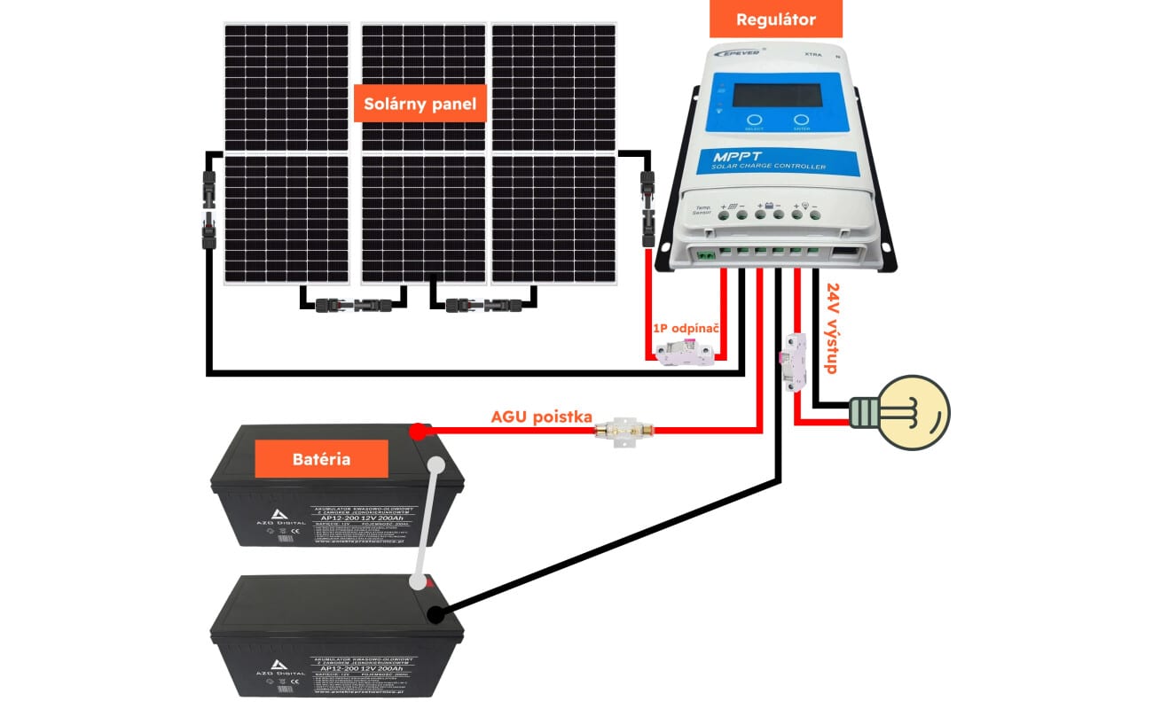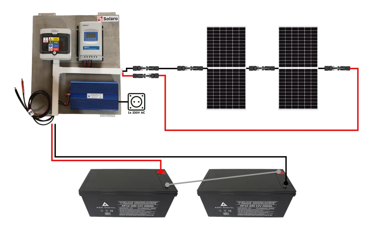 24V/1500VA Ostrovní fotovoltaický systém 900Wp 200Ah
