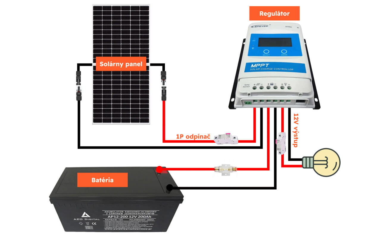 24V Ostrovní fotovoltaická sestava 900Wp 200Ah s 40A MPPT