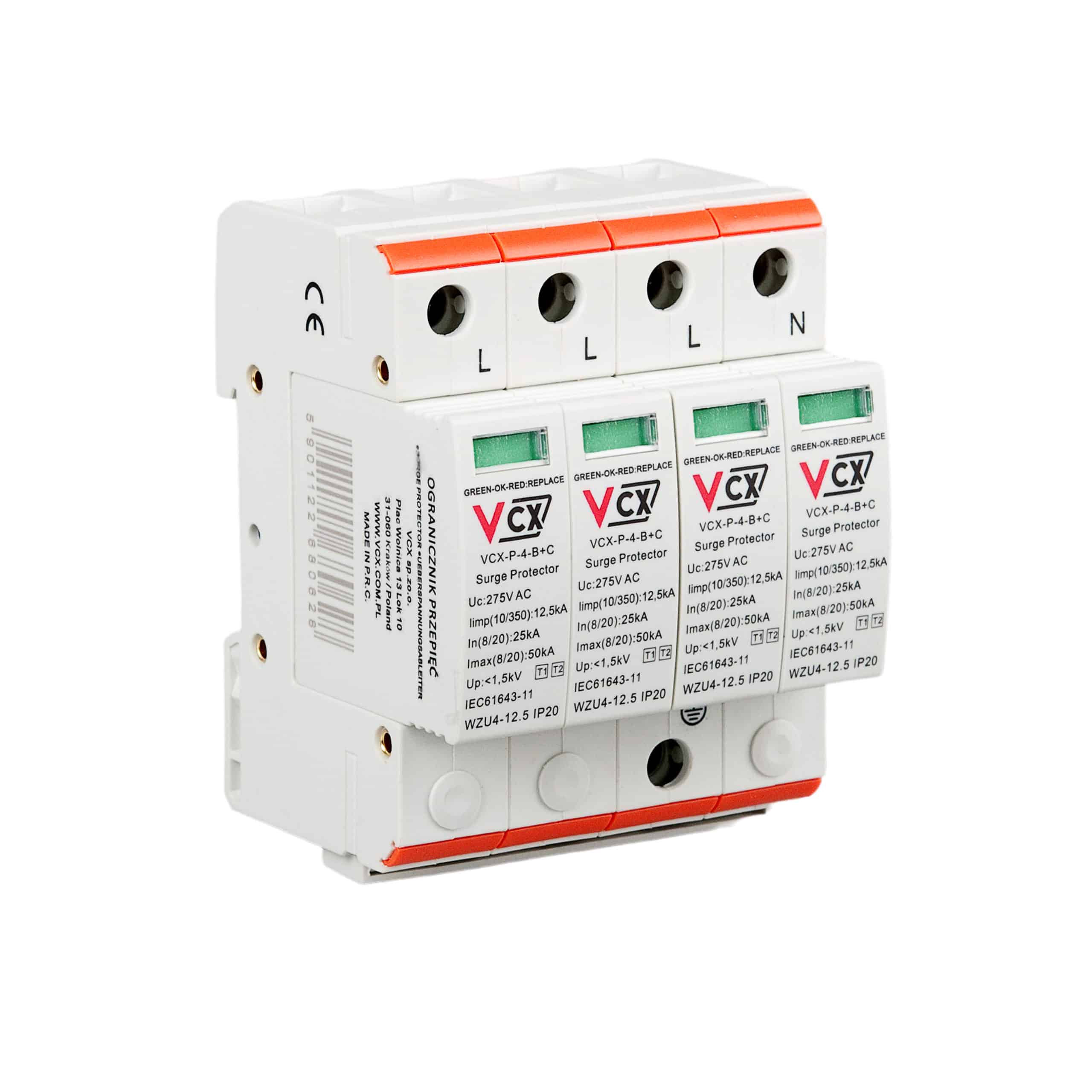 Ochrany přepětí VCX BC třídy T1 T2. Jsou určeny k ochraně elektrických instalací nízkého napětí před účinky indukovaných a spínacích přepětí. Měly by se používat jako první i druhý stupeň ochrany při fotovoltaických instalacích. Ochrana přepětí na ochranu těch nejcitlivějších zařízení, funguje pomocí patentované technologie.