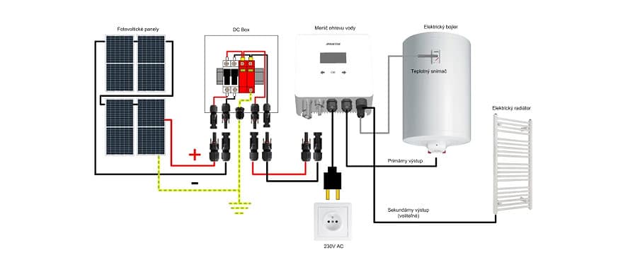 Zapojení ohřevu vody s fotovoltaickým měničem: