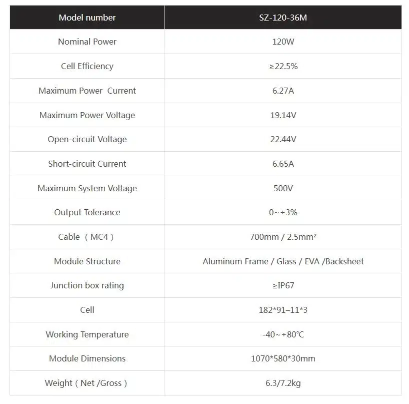 | Výkon panelu (Wp) | 120 |