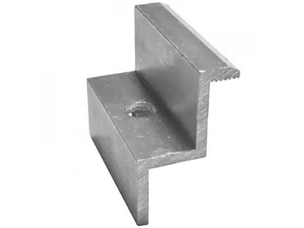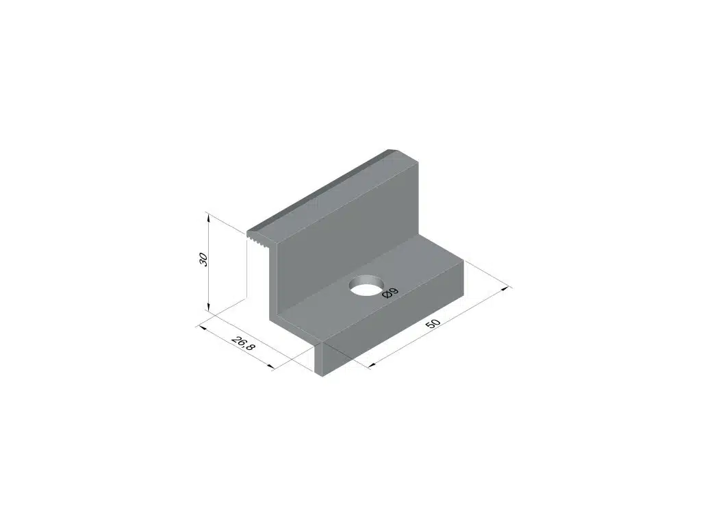Koncový hliníkový úchyt určený pro koncové upevnění fotovoltaických panelů s tloušťkou 30 mm. Tento úchyt se montuje na konec panelu a zubování na styčné ploše zajišťuje pevné a stabilní uchycení.