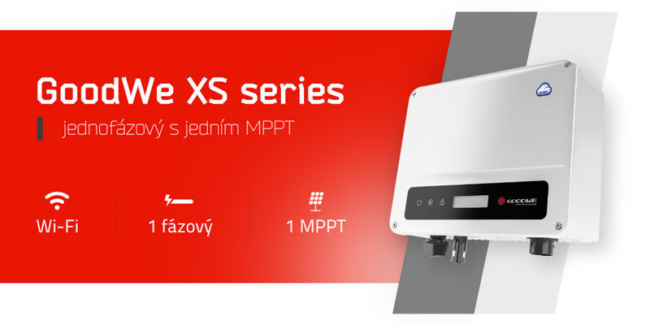 Jednofázový měnič GoodWe 1000-XS s pasivním chlazením a nízkou vlastní spotřebou. K měničům je možné připojit toroidní měřicí modul (CT device), který měří směr toku proudu a na základě změřených hodnot dokáže regulovat výkon zařízení a tím zabránit nežádoucímu proudění do sítě distributora.