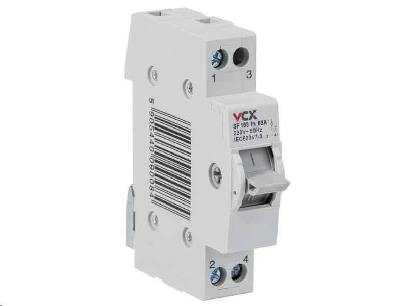 Modulární přepínač sítě SF163 1P 63A VCX na montážní lištu. Síťové přepínače slouží k přepínání mezi různými typy napájení. V případě výpadku síťového napájení umožňují přepnout na napájení z agregátu nebo jiného tzv. nouzového zdroje.