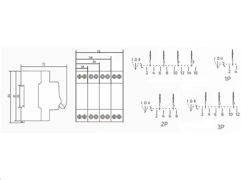 Provozní napětí této jednotky je 400 V AC, 50 Hz, zatímco izolační napětí je 690 V AC, rozměry přepínače 1P jsou 18 mm. Síťový spínač může sloužit buď jako jistič, nebo jako vypínač. Má schopnost přepínat z jednoho okruhu na druhý.