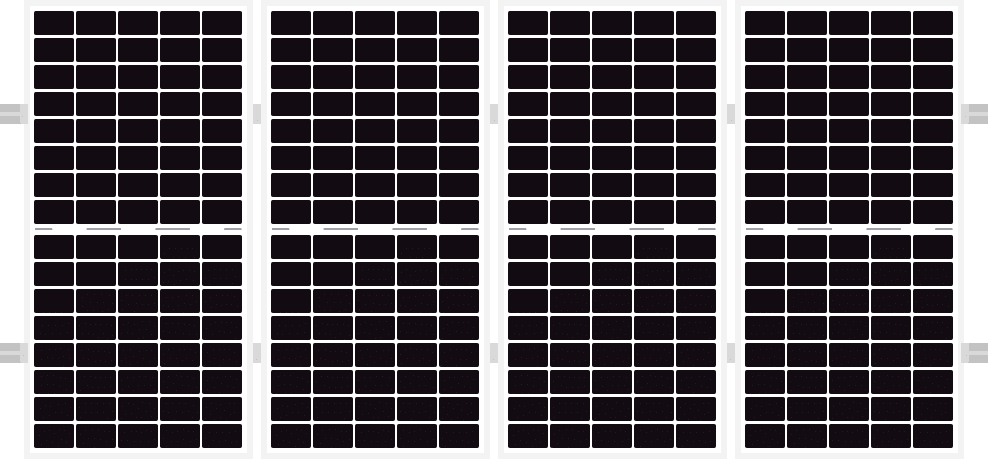 Konstrukční set obsahuje hliníkové profily, dlouhé 240cm. Tato délka je přizpůsobena rozměrům panelů a tedy tento konstrukční set se dá na střeše kombinovat různými způsoby.
