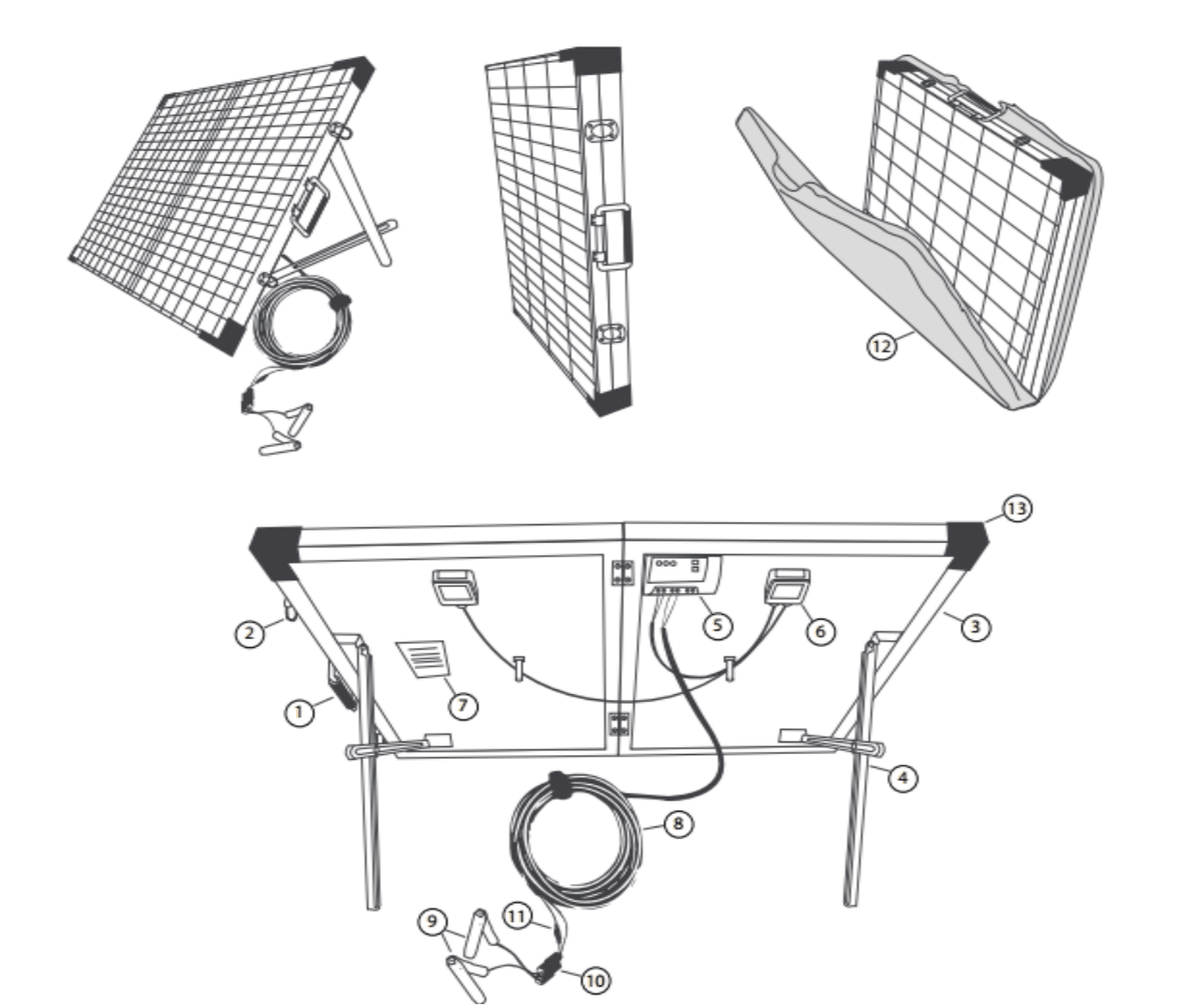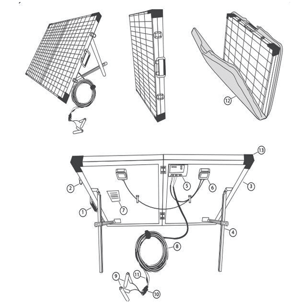 Panel stačí rozložit na vhodném místě, zapojit baterii (přes vestavěný 10A solární regulátor nabíjení LS1024 EU) a hned můžete využívat energii ze slunce. Pro dosažení optimálního výkonu se doporučuje přizpůsobovat úhel panelů tak, aby byly co nejvíce otočeny směrem k slunci během dne.