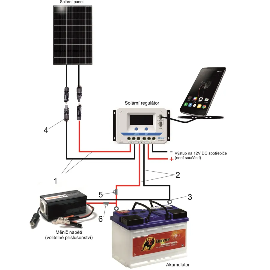 - Ochrana proti přepólování připojení solárních panelů a baterie.