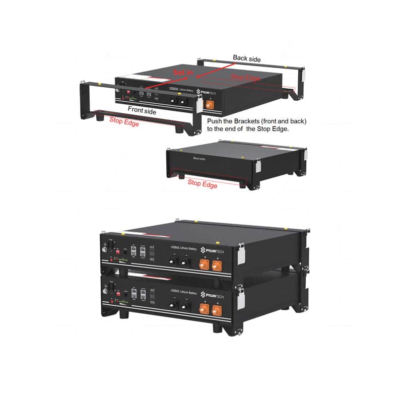 Rám s klipsy na skládání baterií PylonTech US5000 nad sebe.