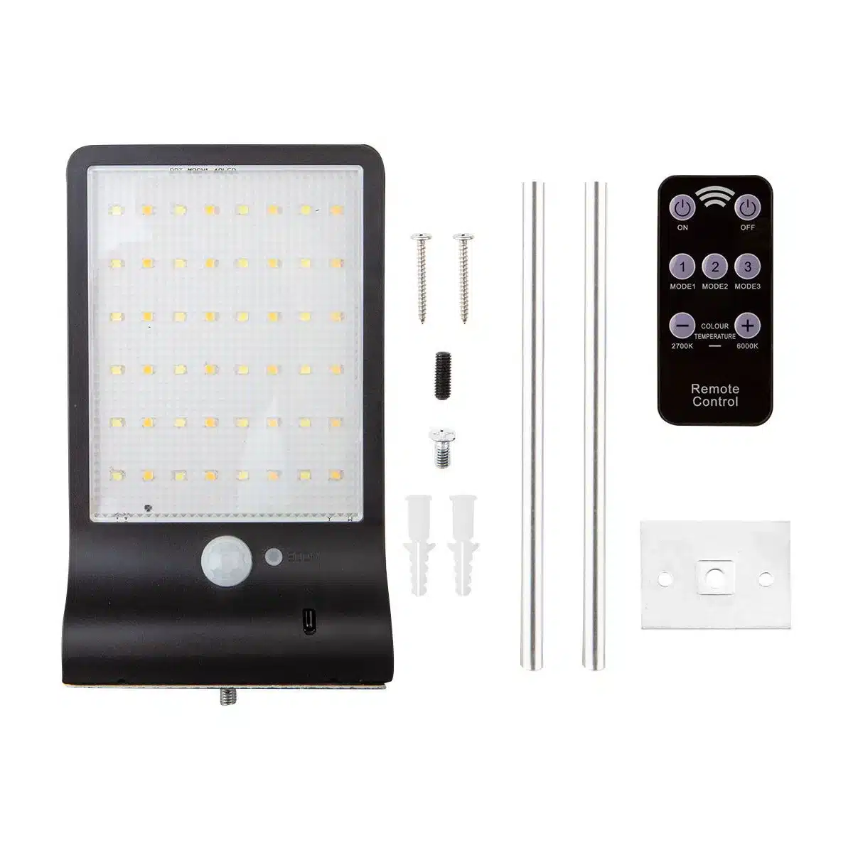 Lampa má tři funkce osvětlení, pohybový senzor od 3 do 5 metrů a senzor soumraku. Přiložené dálkové ovládání (s dosahem 5 metrů) vám umožňuje měnit nastavení, aniž byste opustili svůj domov nebo pracovní místo.