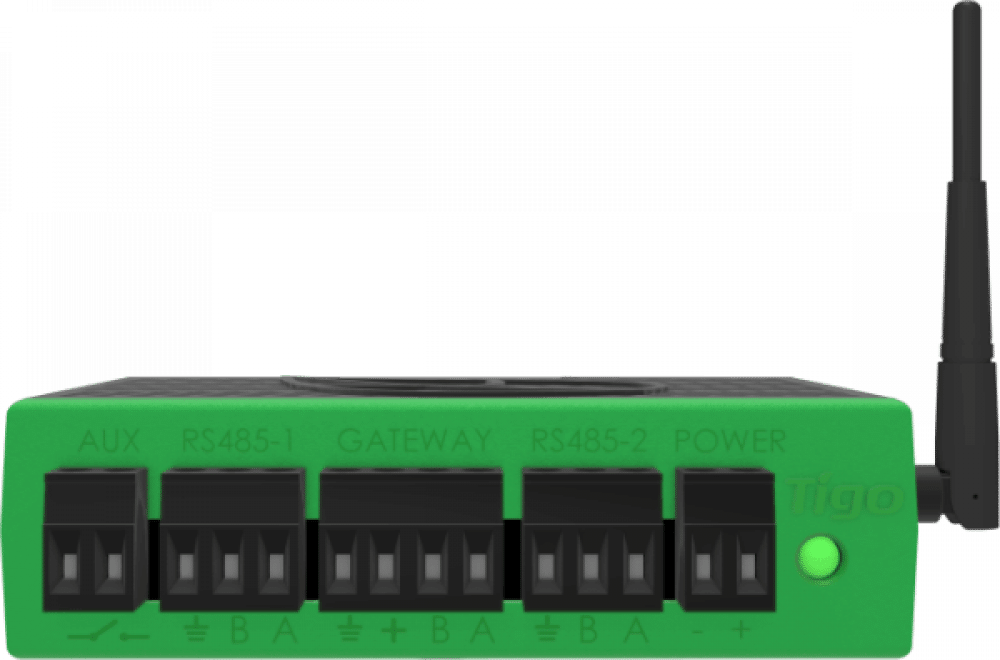Gateway je nainstalován na střeše u panelů a přijímá data z nich v okruhu 15 m. Tato data zasílá prostřednictvím vedení RS485 do dataloggeru Cloud Connect Advanced a na portál Tigo. Tento set umožňuje prostřednictvím připojení snímače odpojení komunikace na úrovni panelu.