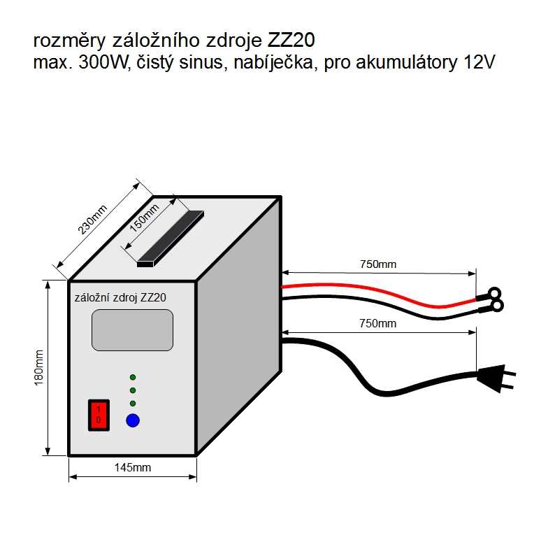 - Rozměry záložního zdroje: cca. délka 146, šířka 237, výška 170mm