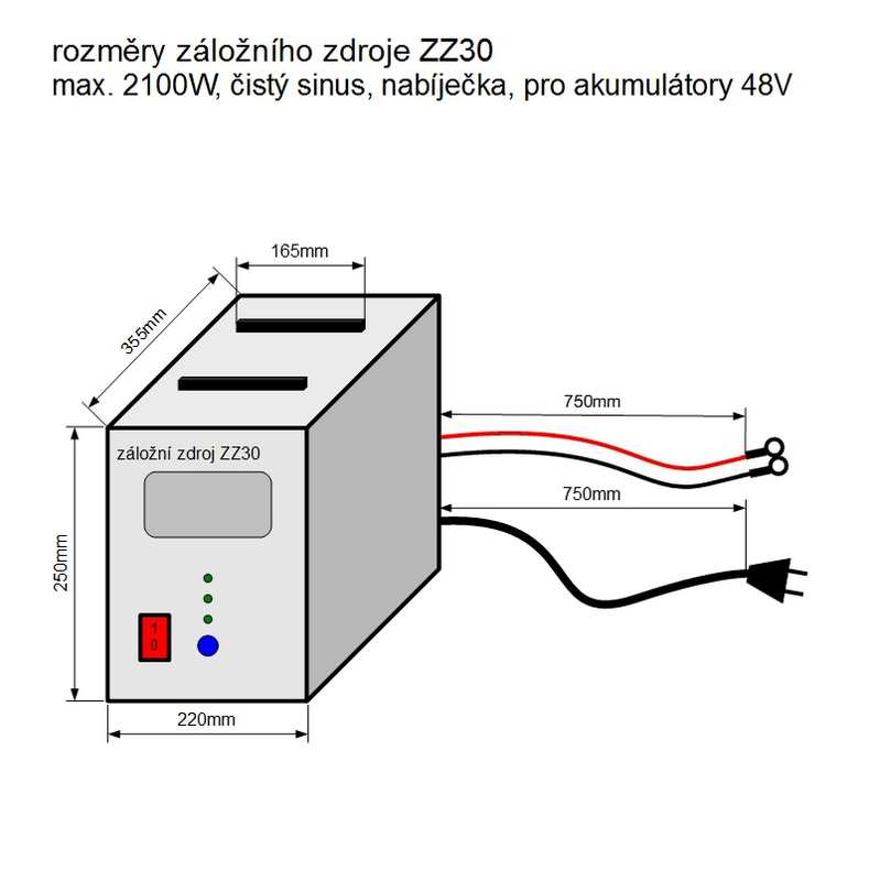 - Rozměry záložního zdroje: cca. délka 220, šířka 335, výška 230mm