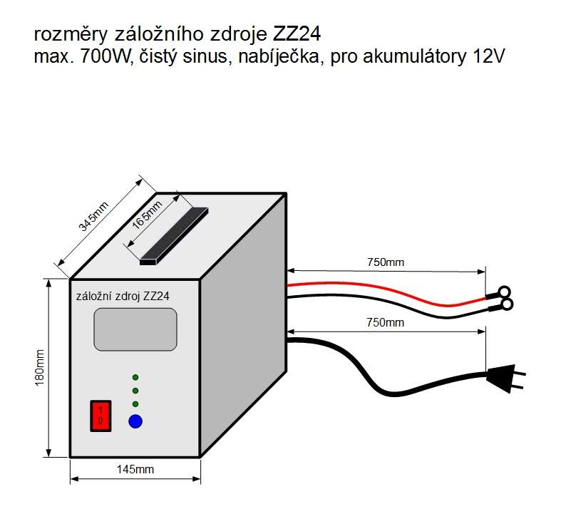 • Rozměry záložního zdroje: cca. délka 145, šířka 345, výška 180mm